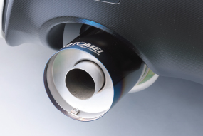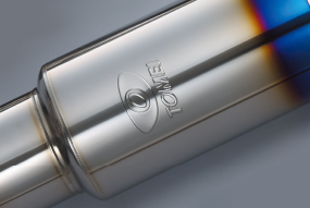 テールエンドEND TIP Φ115スラッシュカットのテールエンド。チタンブルーの焼き色を配し上部にはTOMEIロゴをレーザー刻印する事で テールエンドをスポーティーに演出しています。 115mm Slant-cut end tip.Titanium blue with laser marked TOMEI logo on the end tip. They together give it the great appearance and prove the best quality. |